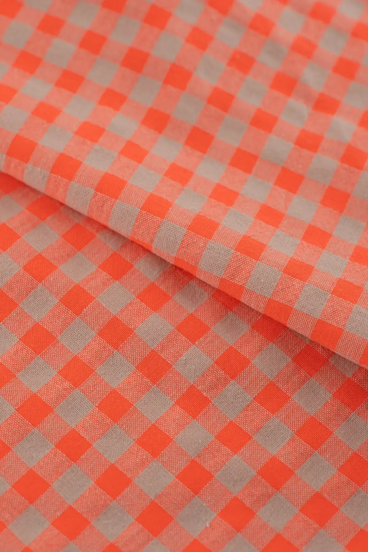 Tejido de cuadros confeccionado en algodón orgánico y fibras de cadena larga recicladas. Suave y de aspecto natural