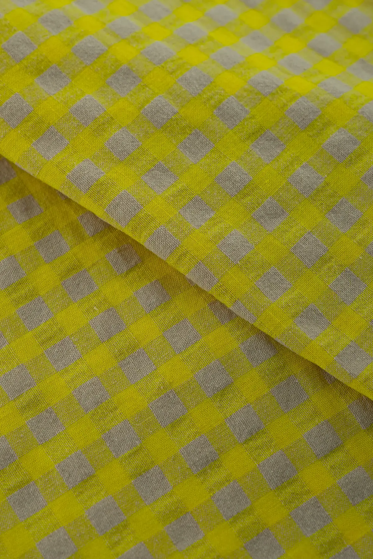 Tejido de cuadros confeccionado en algodón orgánico y fibras de cadena larga recicladas. Suave y de aspecto natural