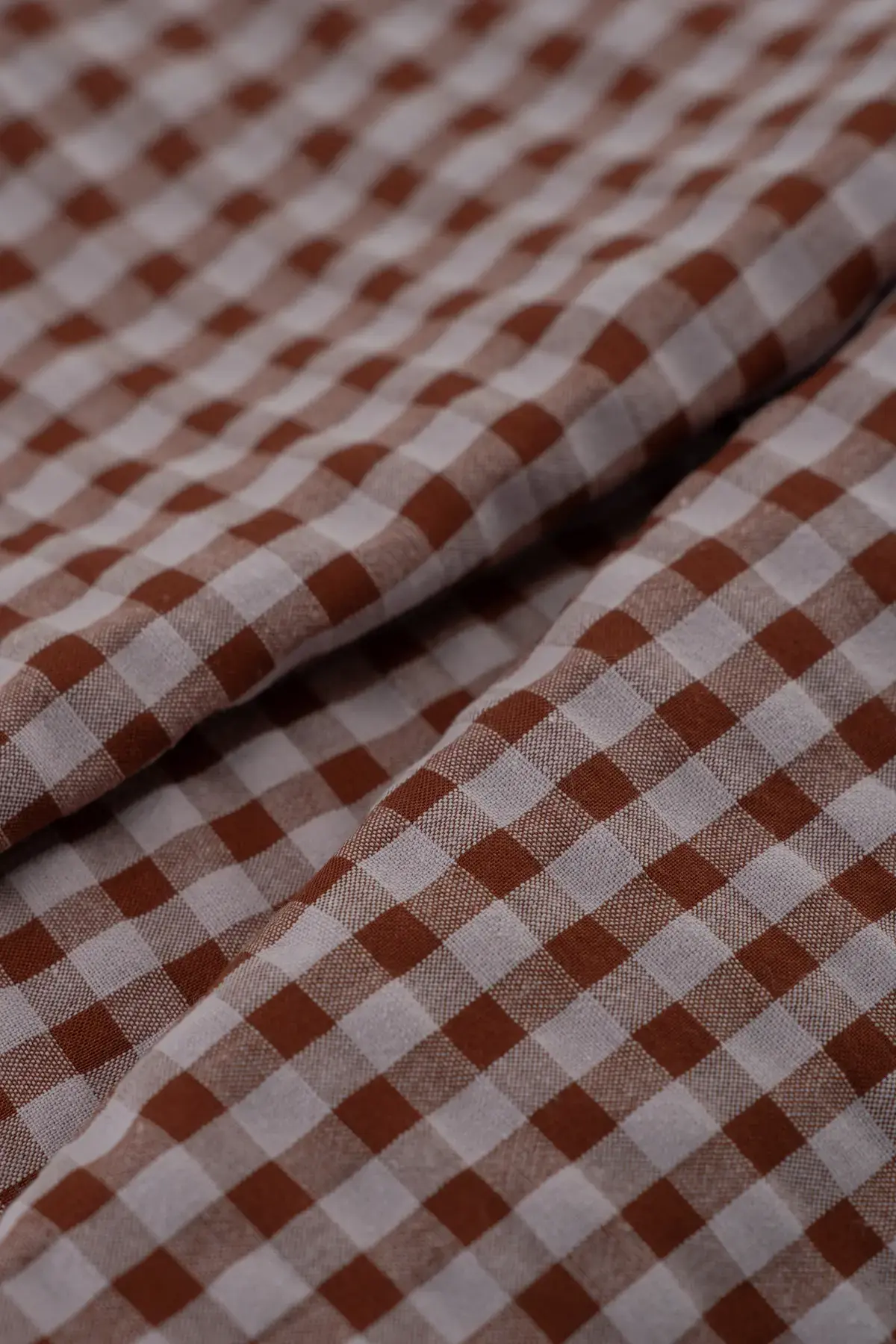 Tejido de cuadros conf en alg organico y fibras de cadena larga recicladas. Suave y de aspecto natur