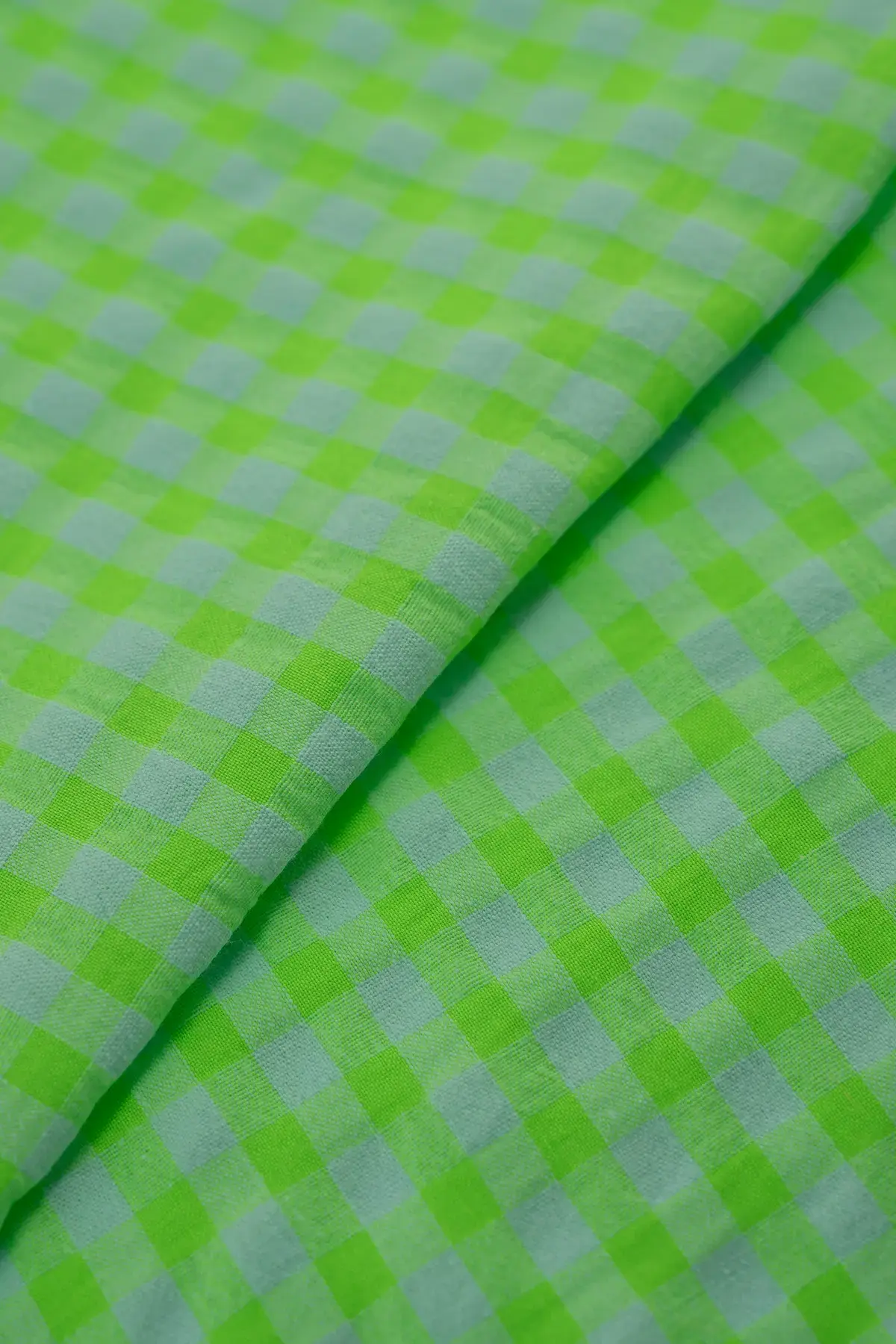 Tejido de cuadros confeccionado en algodón orgánico y fibras de cadena larga recicladas. Suave y de aspecto natural