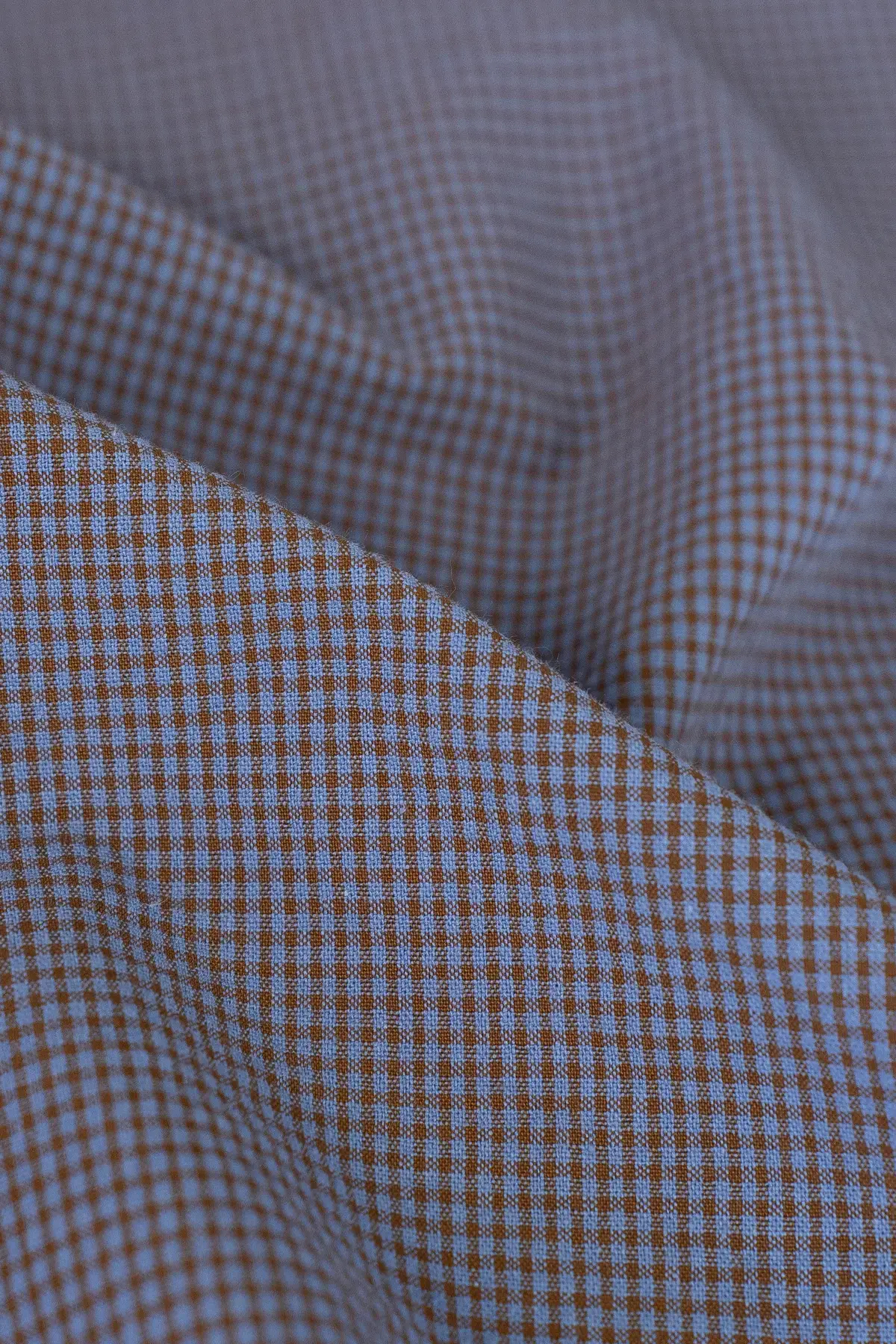 Tejido de cuadros conf en alg organico y fibras de cadena larga recicladas. Suave y de aspecto natur