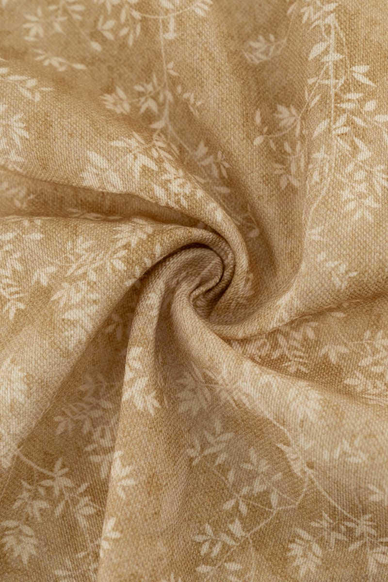 La loneta Flor en color caramelo es un tejido decorativo con un delicado estampado vegetal que aporta calidez y elegancia a cualquier estancia.