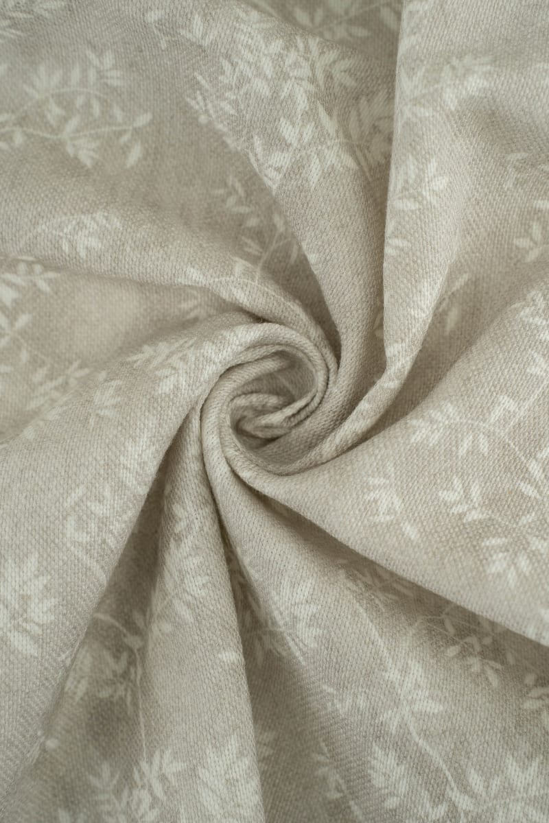 La loneta Flor en color beige en un tono muy suave, es un tejido decorativo con un delicado estampado vegetal que aporta serenidad y elegancia a cualquier espacio.