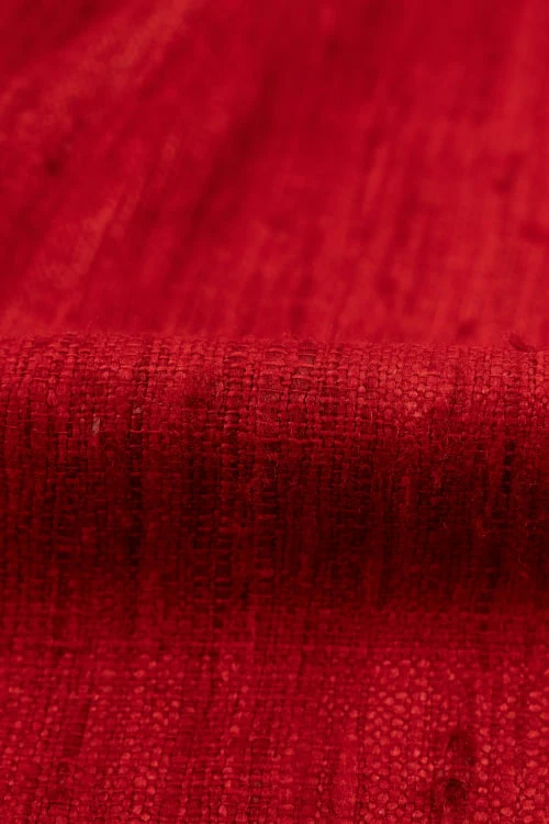 La seda natural roja es ideal para prendas especiales con presencia y un acabado sofisticado. Su color rojo tan profundo es muy alegre, perfecto para primavera y verano.