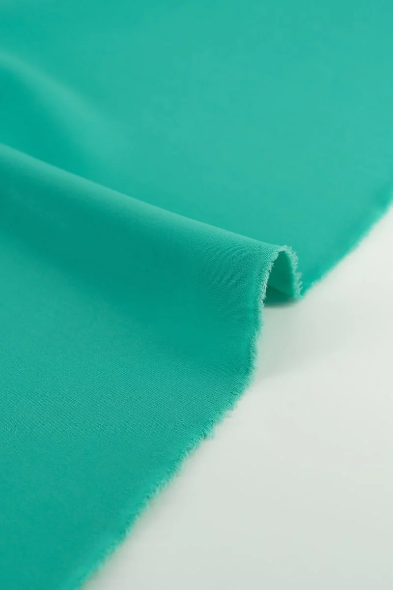 La tecnoseda en color verde claro es un tejido ligero y suave, con una caída fluida que lo hace ideal para prendas con movimiento y un acabado elegante.